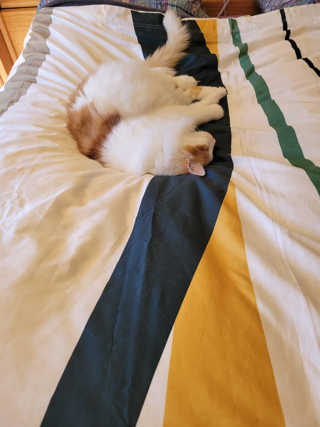 The colors also look great in our master bedroom — it really pulls the space together. Between the design, the ease of use, and Smitty’s approval, this duvet cover gets five stars from us!